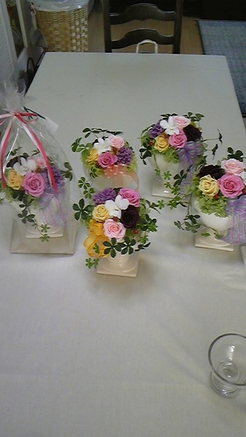 4月からはチケットの枚数でアレンジが選べるようになりました。今回は皆様のご希望もあり、予定変更でレッスンしました。お母様やお世話になっているお医者様にと、プレゼント用にお作りになられました(^_^)