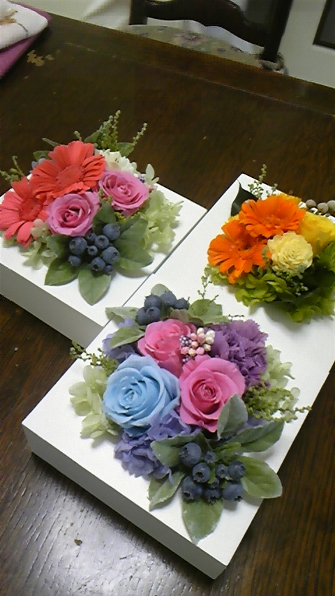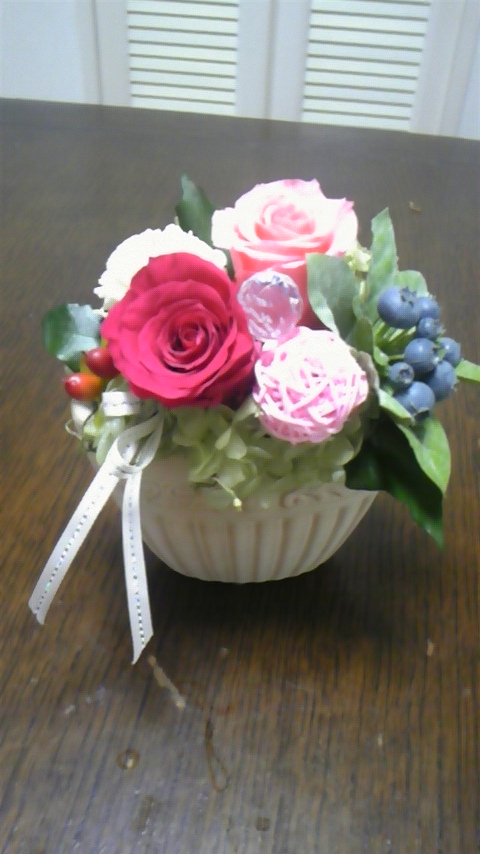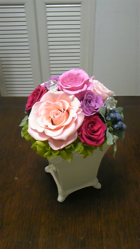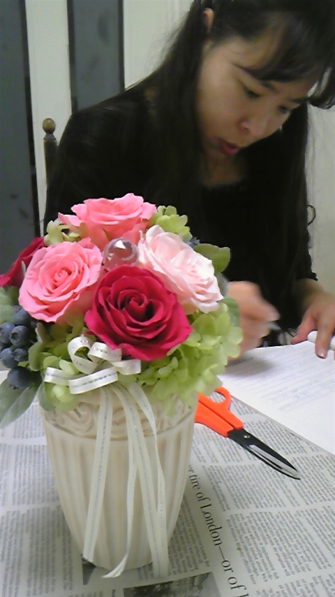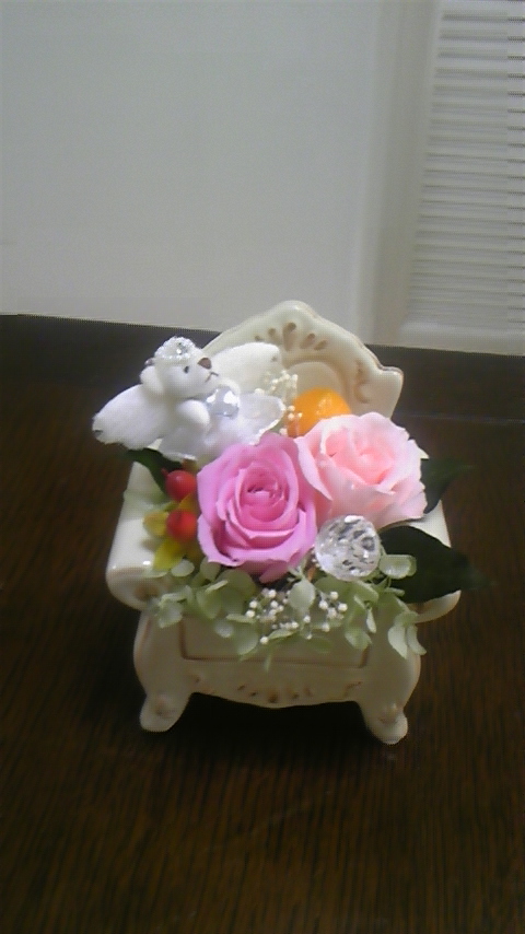 ご結婚のお祝いに、手作りのプリザーブドフラワーアレンジを作られましたo(^-^)o