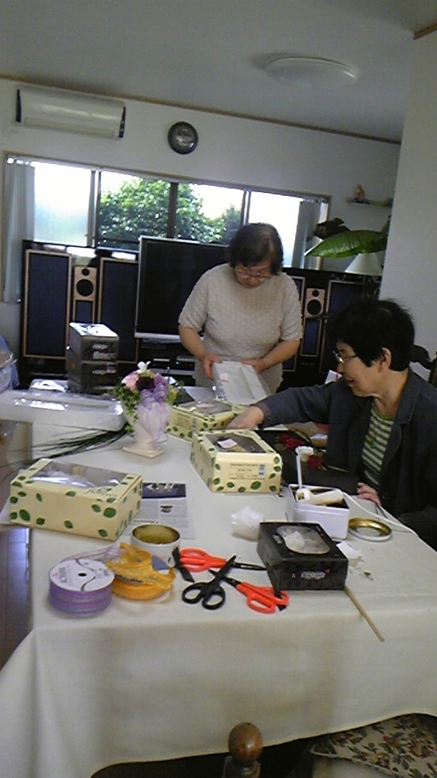 7月14日、学園前の西部公民館にて女性講座の 三回目のテーマはプリザーブドフラワーアレンジです。