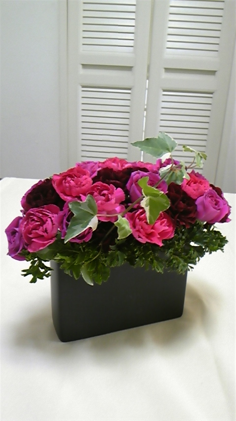 少し大きなアレンジです。バラを沢山入れて豪華に(^_-)-☆