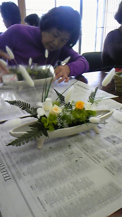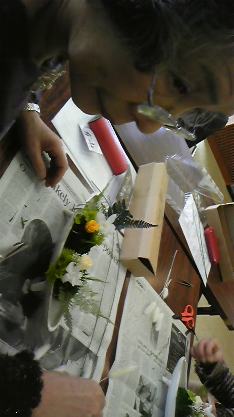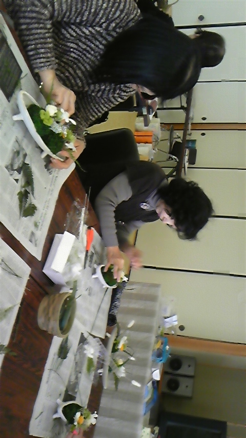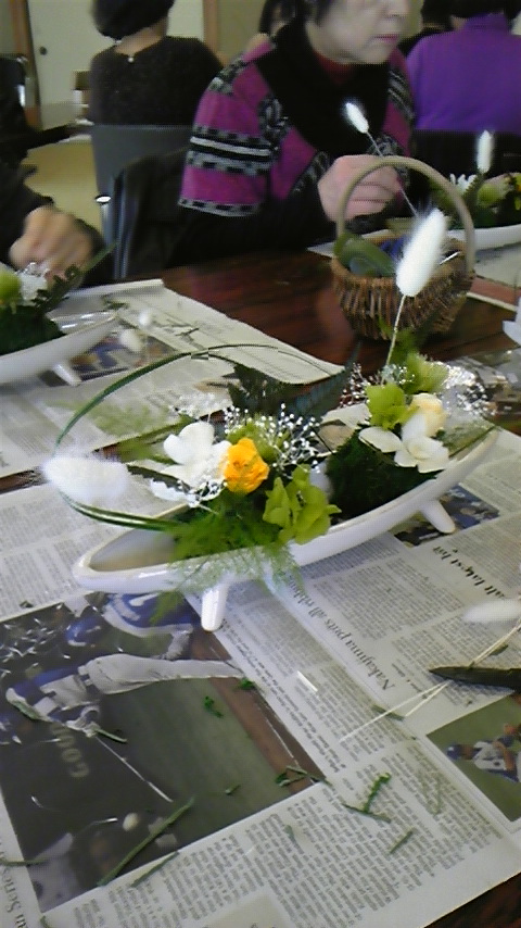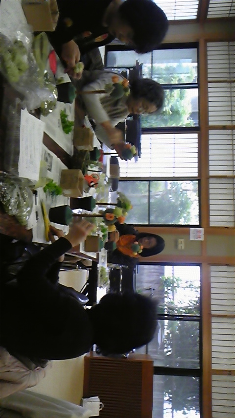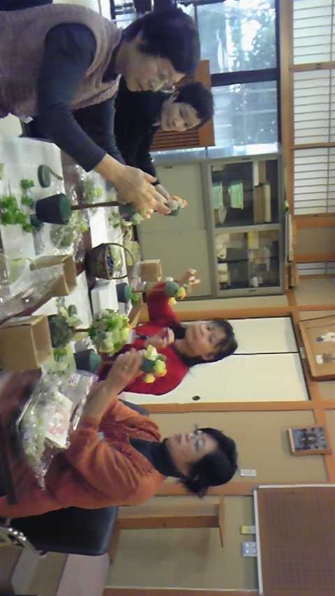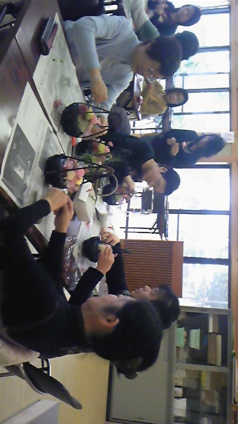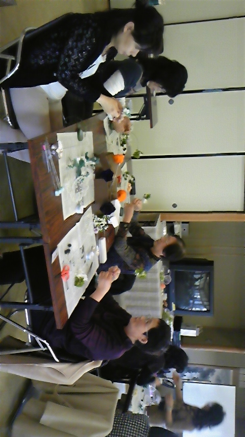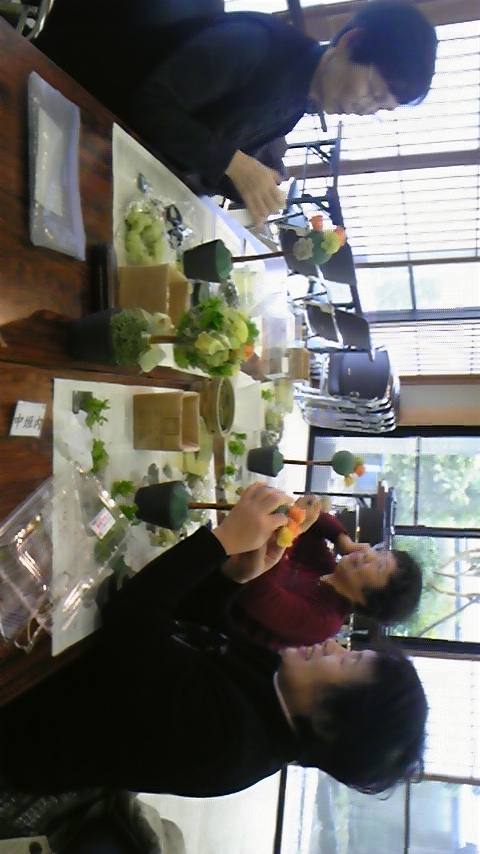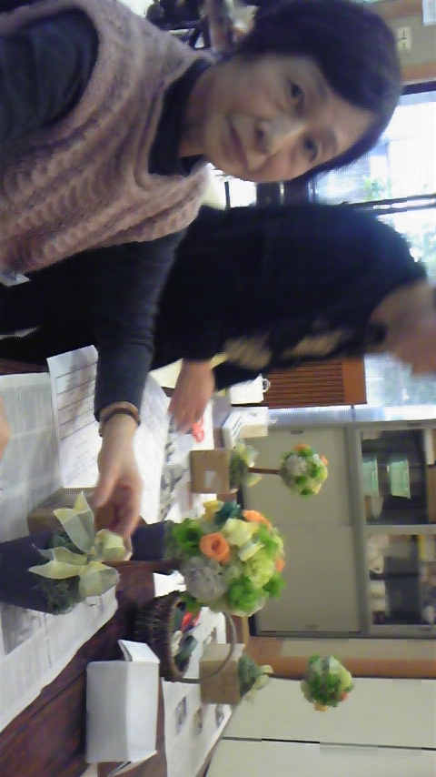 今日は時間いっぱい頑張っていただきました。皆様まぁるく仕上がり、元気一杯のアレンジが出来上がりましたね。本当にお疲れ様でしたm(__)m。材料を買われた方はお家でも頑張って下さいねo(^-^)o