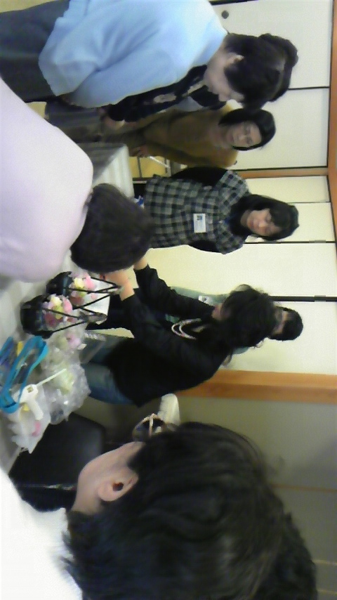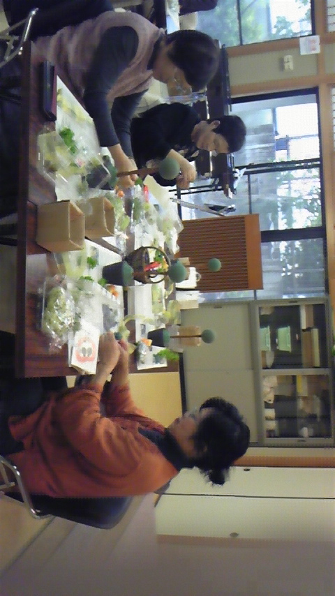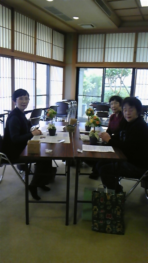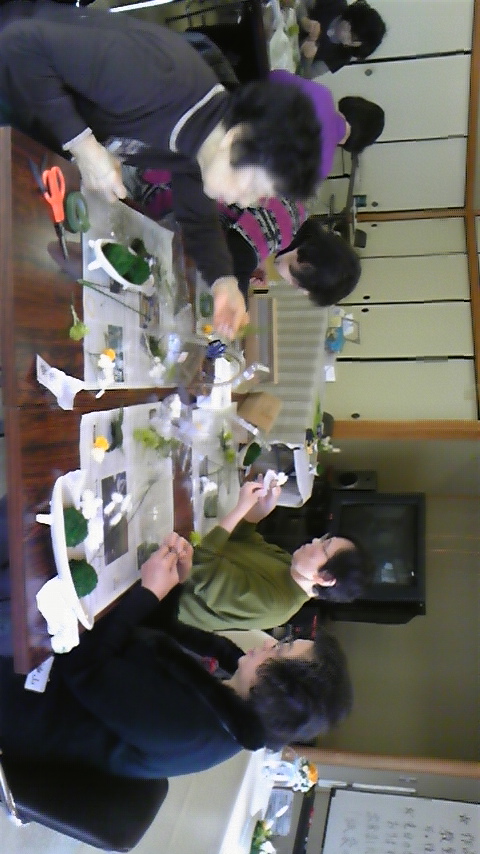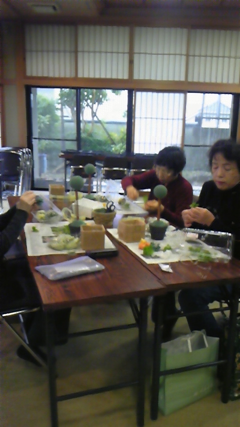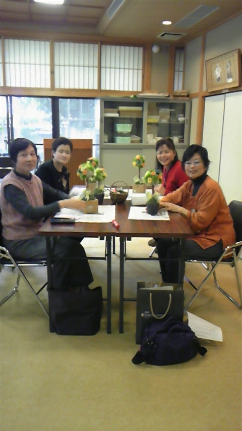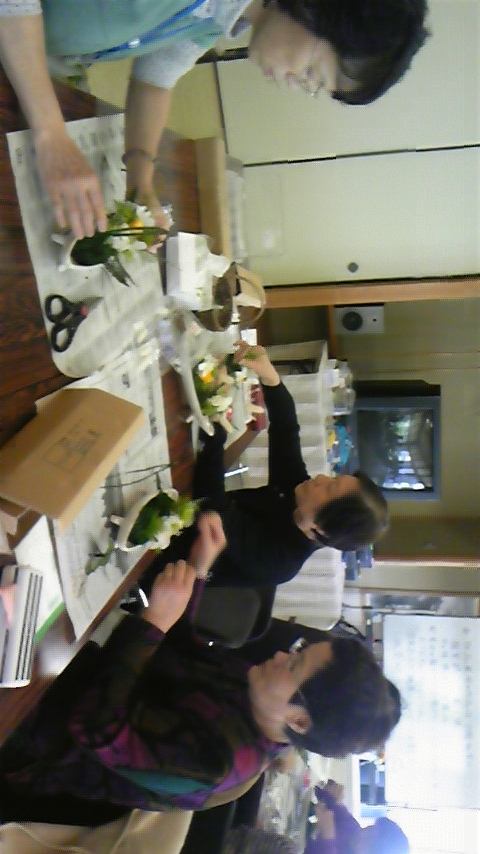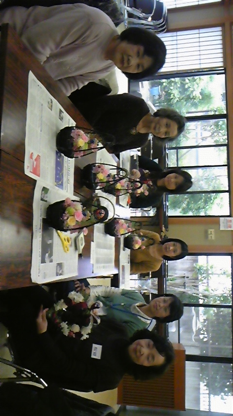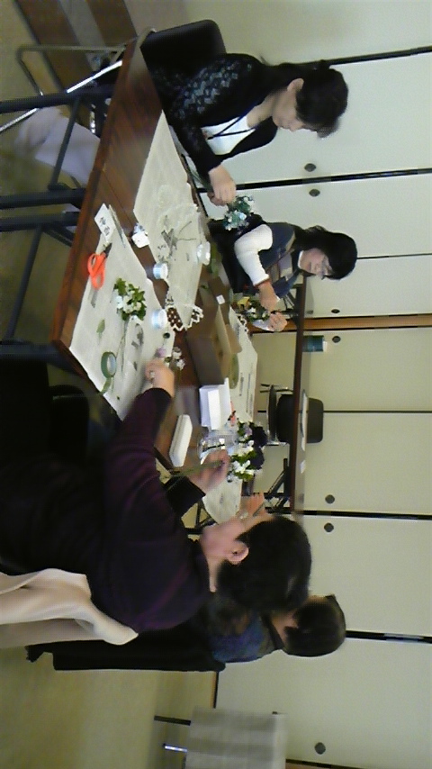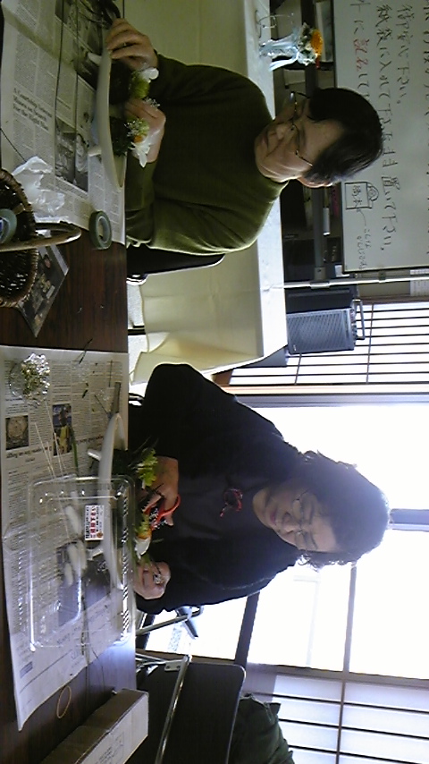 今日は時間いっぱい頑張っていただきました。皆様まぁるく仕上がり、元気一杯のアレンジが出来上がりましたね。本当にお疲れ様でしたm(__)m。材料を買われた方はお家でも頑張って下さいねo(^-^)o