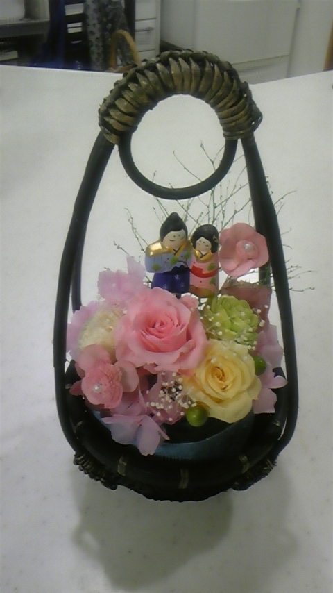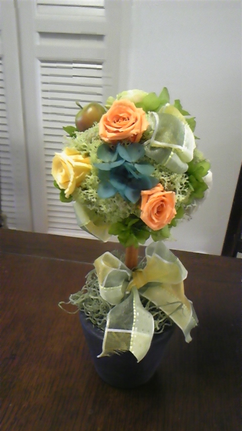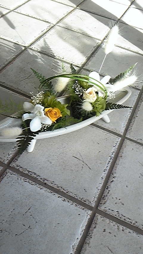 奈良の某幼稚園を定年退職される方への祝い花を二つご注文いただきました。大きいアレンジを一つより、二つ飾って楽しんで頂けるようにとの事です。良いアイデアですね♪ フレッシュのお花は豪華ですが、すぐに枯れてしまうのが悲しい(ノ_・。)ですよね。こんな時は何年も楽しめるプリザが喜んで頂けますね~。気に入ってもらえるでしょうか?ドキドキです。