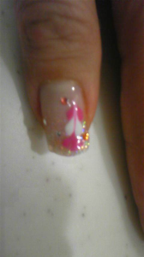 バレンタインといえばハート!可愛いでしょ!まるでフランス料理のソースの様にダブル*トリプルのハートが描かれて行くではないですか~p(^^)q そして、さすがスワロフスキーはオレンジ色も輝きがちがいますね~可愛いネイル見て~って感じです。指も心もウキウキ♪なのだ~(^_-)-☆ イェーイ★