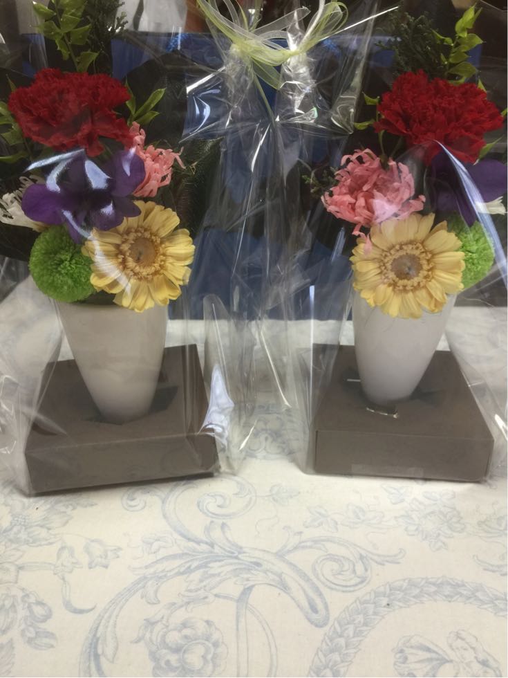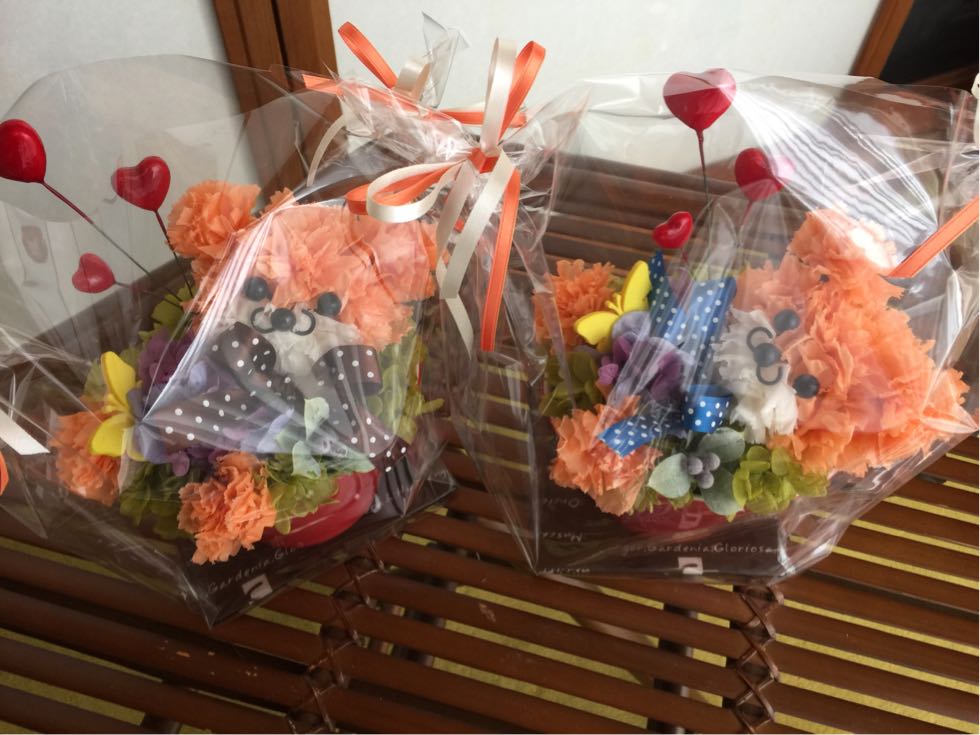 カーネーションで作るくまちゃんのアレンジを2つご注文頂きました。