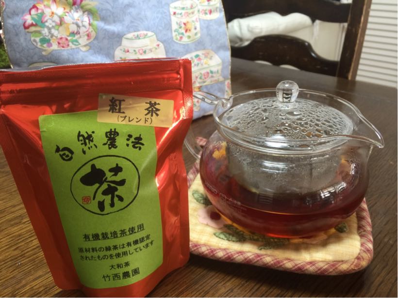 ちいちゃん、の作ったチーズケーキで、奈良の無農薬紅茶を入れていただきました。