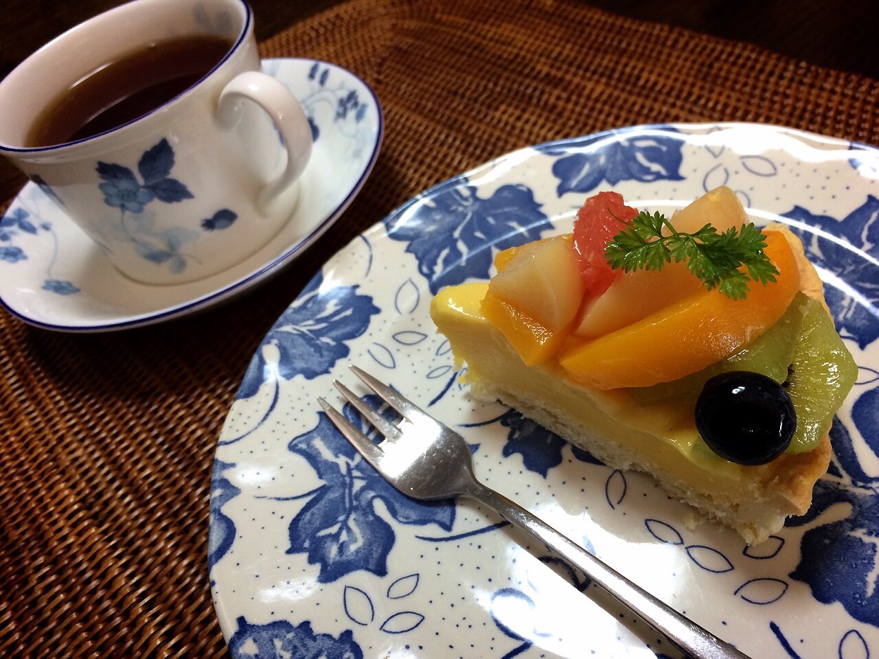 本日は、ちいちゃんの作ったタルト・オ・フリュイ・フレと、Earl Grayの紅茶です。