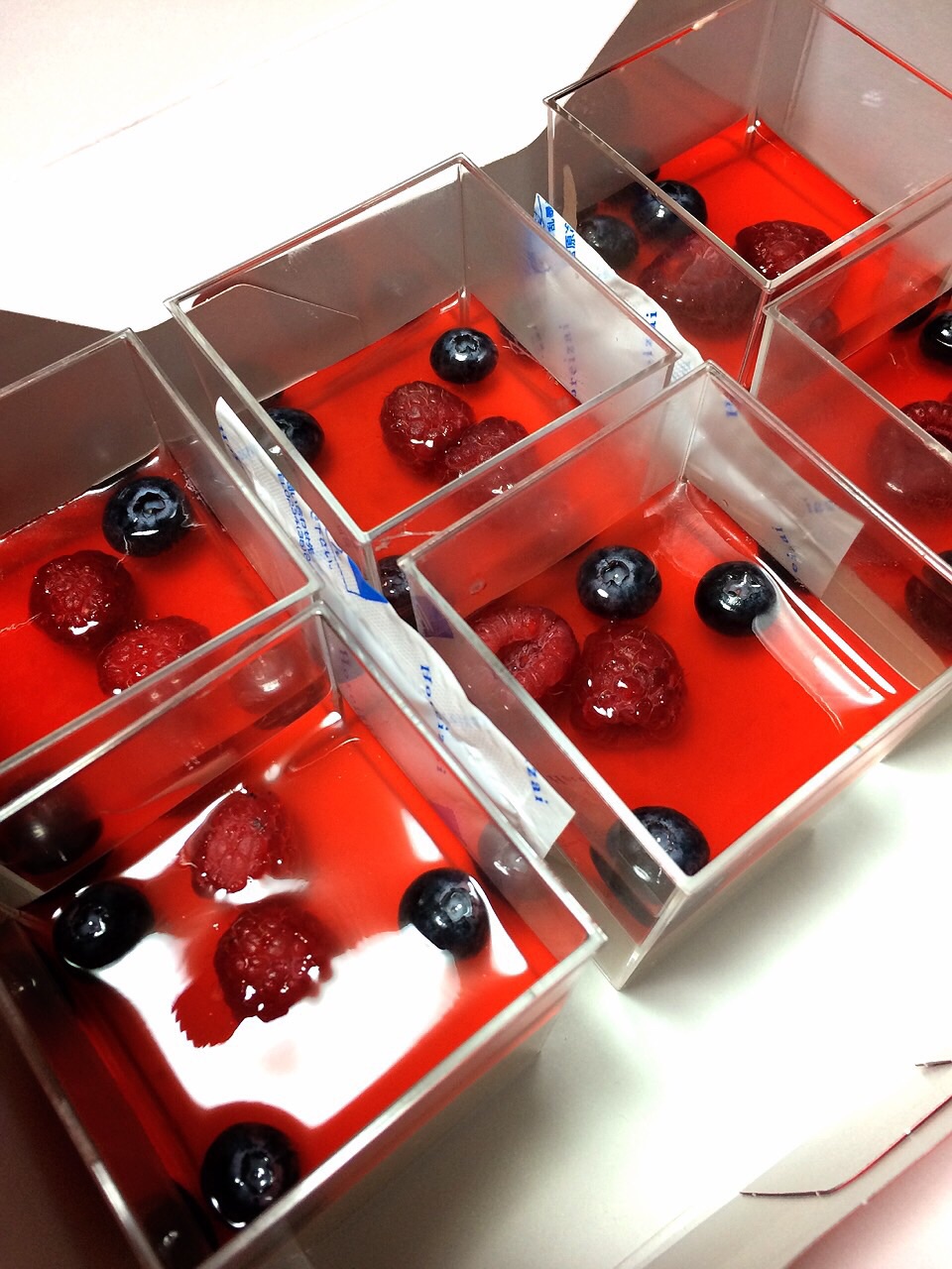 ちいちゃんが作ったイチゴのムース上にはラズベリーと、ブルーベリーをのせて。キレイ✨