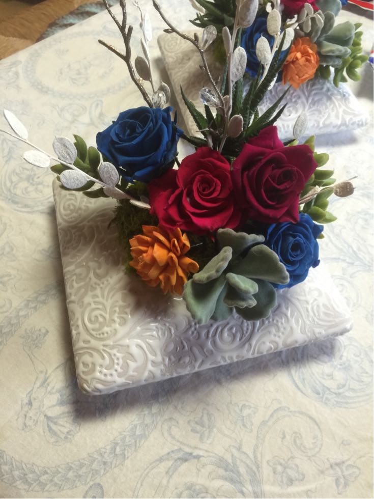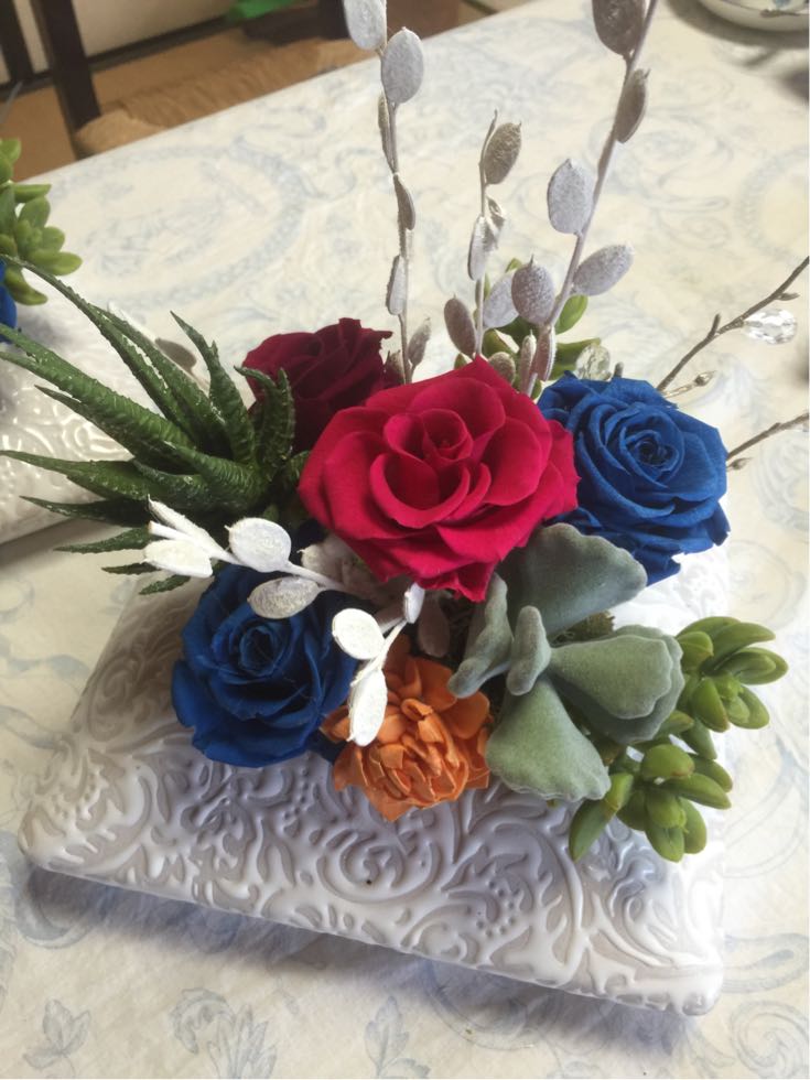 プリザーブドフラワーと多肉系植物のアレンジ