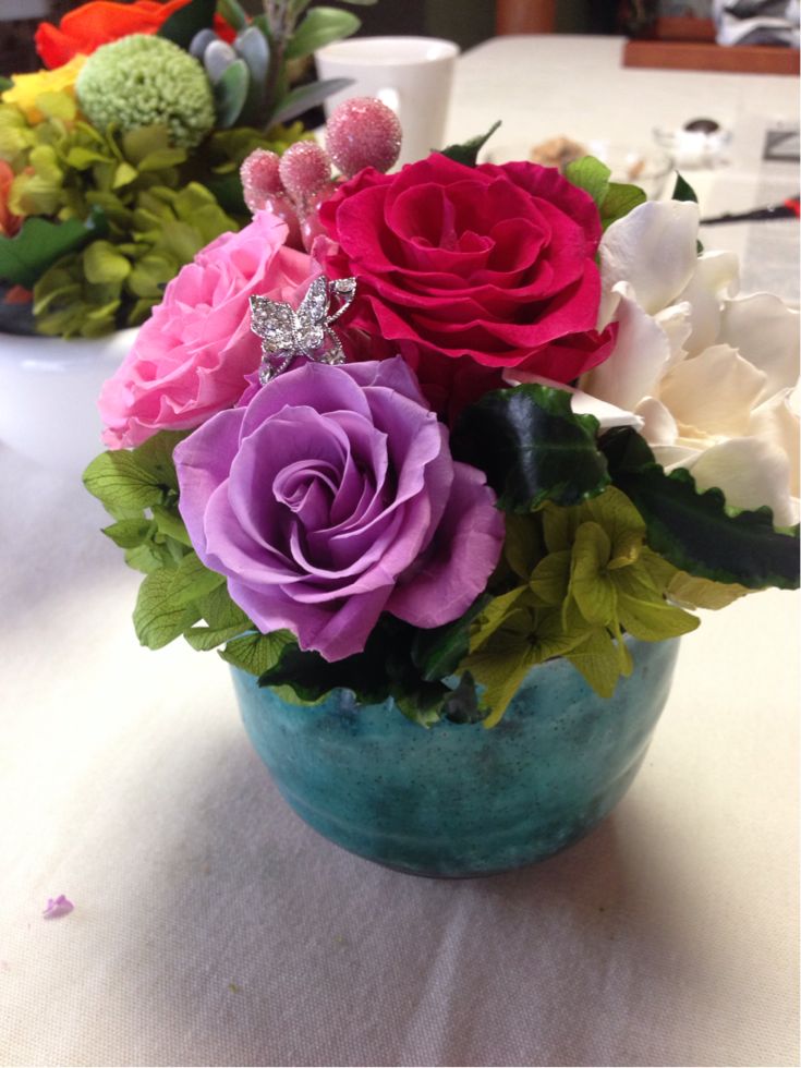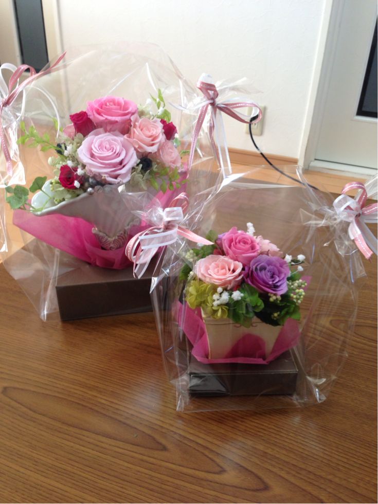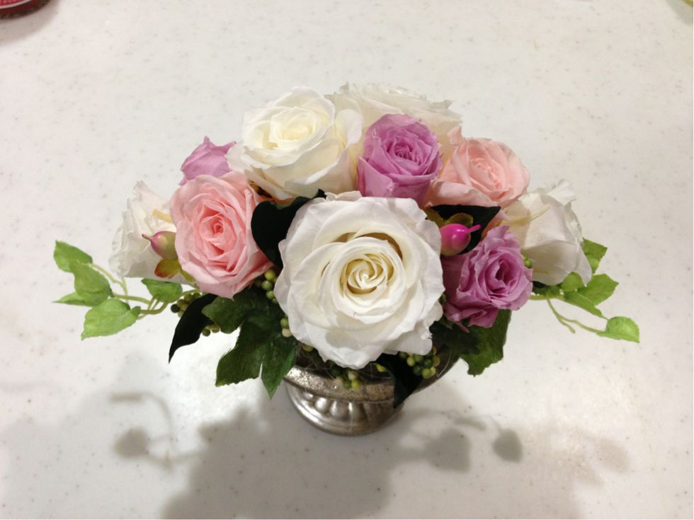 お嬢様の21歳のお誕生日にプリザーブドフラワーのアレンジを