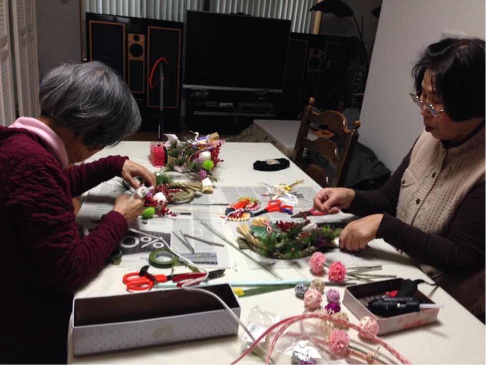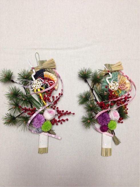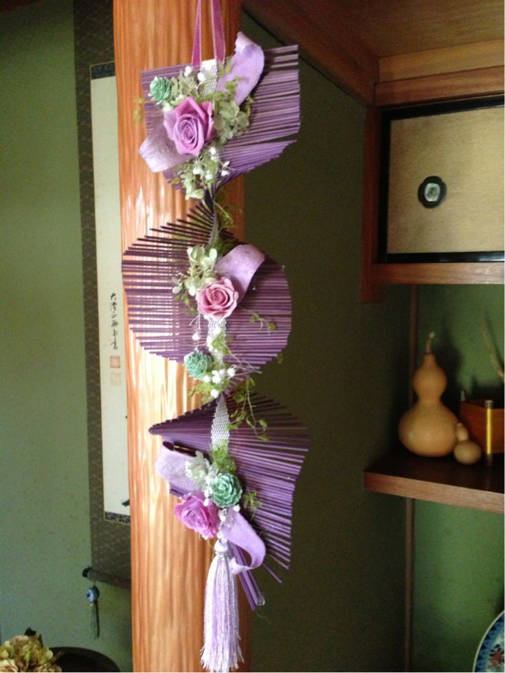 松、扇、鶴、プリザ、和紙で早くもお正月気分です。