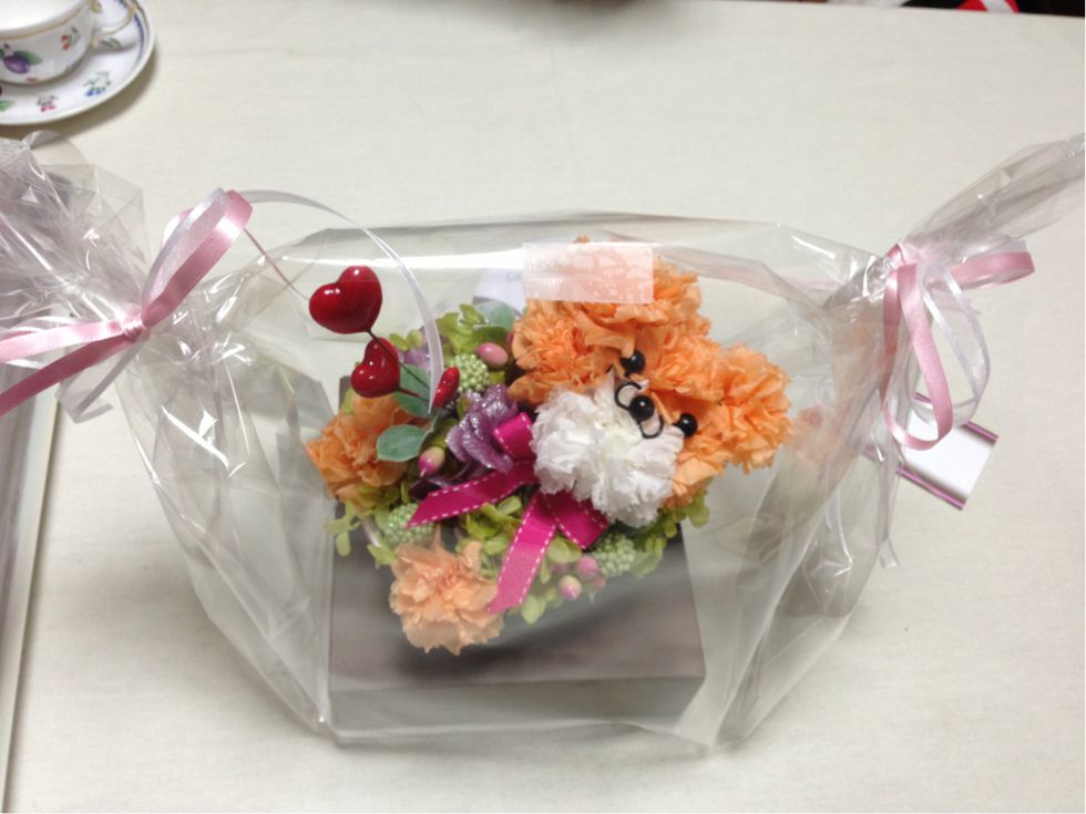 カーネーションで作るくまのアレンジに挑戦。可愛い表情に仕上がりました。p(^_^)q