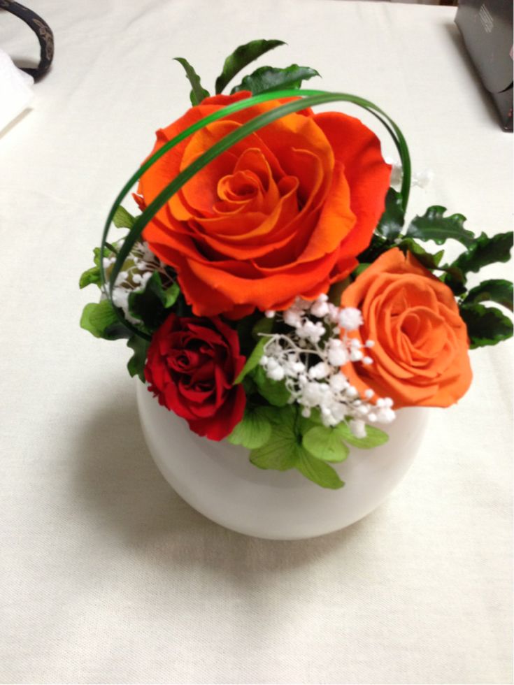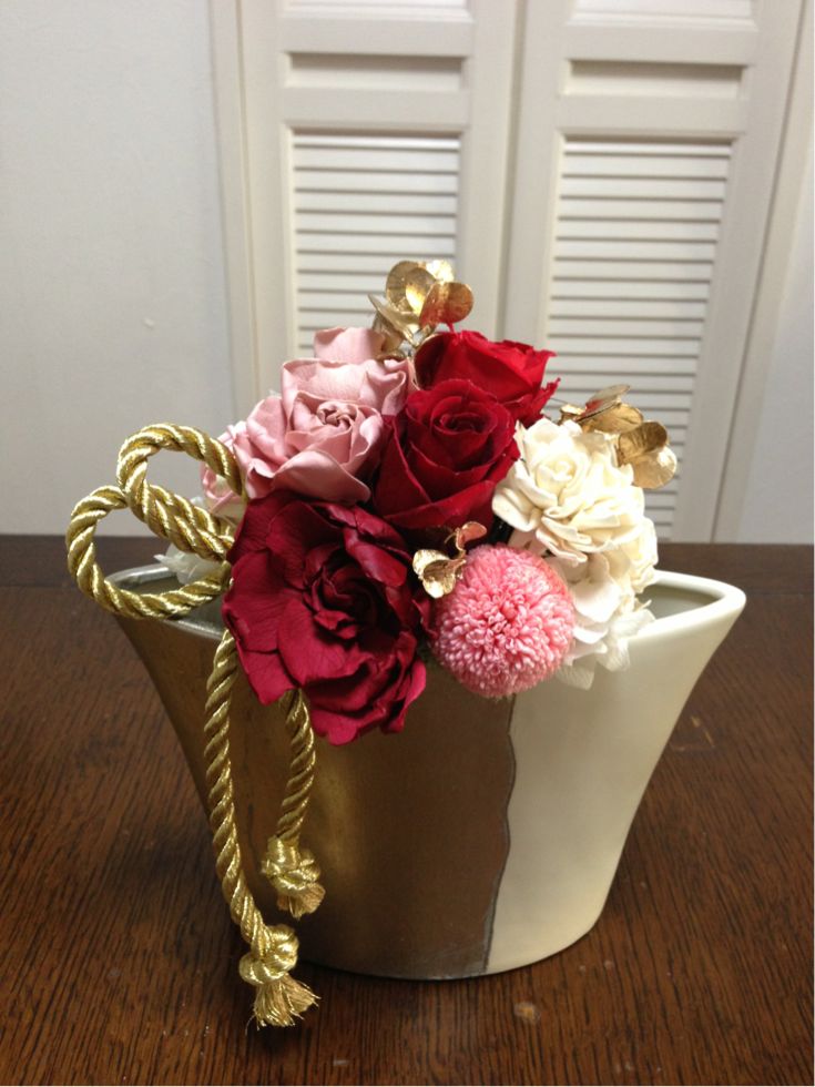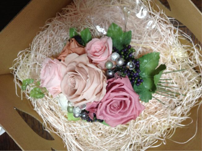 主人の従兄弟が1月に東京の帝国ホテルで結婚式を挙げます。その二人の門出を御祝いするプリザーブドフラワーのアレンジを昨日発送しました。美男美女のカップルだそうです。結婚式楽しみですね。どうぞお幸せに( ^^)Y☆Y(^^ )