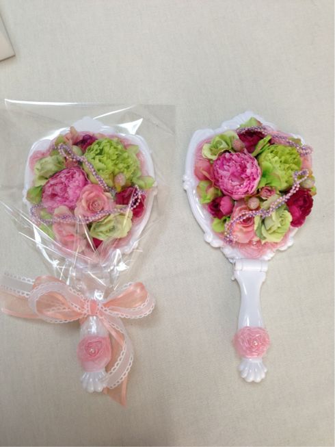 今月はアーティフィシャルフラワーを使って楽屋鏡を作りました。グルーガンでどんどんくっつけていきます。o(^▽^)o楽しくて可愛い〜(o^^o)