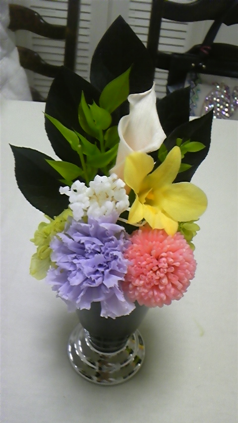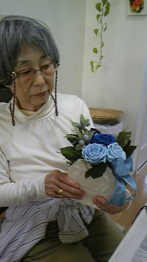 まず、工場見学をしてプリザの出来る過程を勉強しました。お花一杯で一輪一輪手作業でした。 すごいです~。